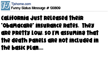 X is California just released their "Obamacare" insurance rates. They are pretty low, so I'm assuming that the death panels are not included in the basic plan....