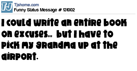 X I could write an entire book on excuses,,, but I have to pick my grandma up at the airport.