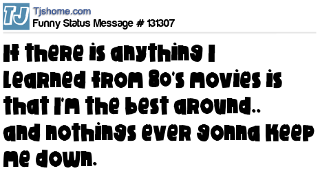- # 149810 If there is anything I learned from 80's movies it's that I'm the best around, and nothing is ever gonna keep me down