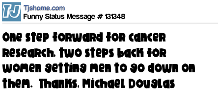 X says One step forward for cancer research, two steps back for women getting men to go down on them. Thanks, Michael Douglas