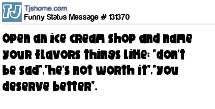 X is Open an ice cream shop and name your flavors things like: "don't be sad","he's not worth it","you deserve better".