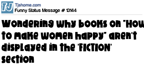 - # 42118 wondering why books on "how to make women happy" arent displayed in the fiction section