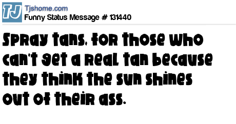 X Spray tans, for those who can't get a real tan because they think the sun shines out of their ass.