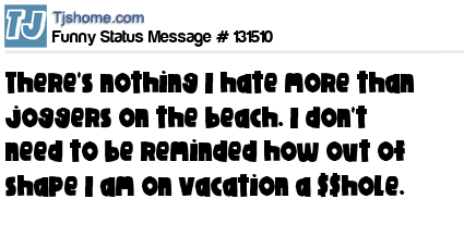 X says There's nothing I hate more than joggers on the beach. I don't need to be reminded how out of shape I am on vacation a $$hole.
