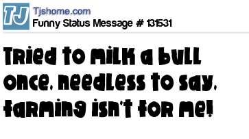X is Tried to milk a bull once, needless to say, farming isn't for me!