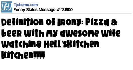 X definition of Irony: Pizza & beer with my awesome wife watching Hell'sKitchen Kitchen!!!!