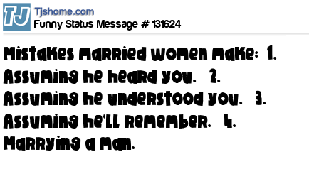 X says Mistakes married women make: 1. Assuming he heard you. 2. Assuming he understood you. 3. Assuming he'll remember. 4. Marrying a man.