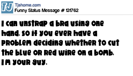 X says I can unstrap a bra using one hand, so if you ever have a problem deciding whether to cut the blue or red wire on a bomb, I’m your guy.