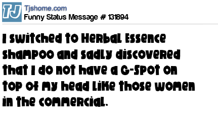 - # 60478 I switched to Herbal Essences shampoo, but quickly discovered that I don't have a clit on top of my head like those women in the commercials.