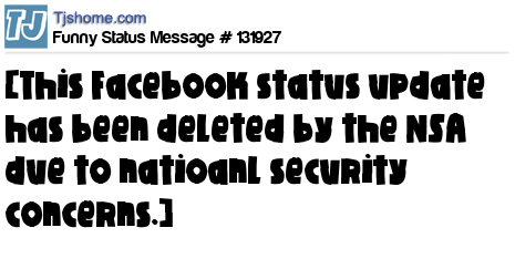 X says [This Facebook status update has been deleted by the NSA due to natioanl security concerns.]