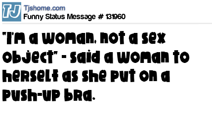 X says "I'm a woman, not a sex object" - said a woman to herself as she put on a push-up bra.