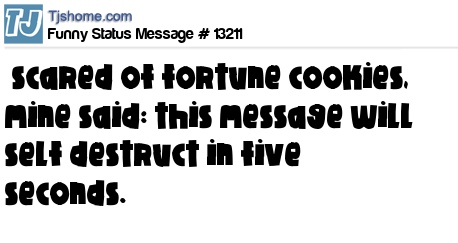 X is scared of fortune cookies, mine said: this message will self destruct in five seconds.