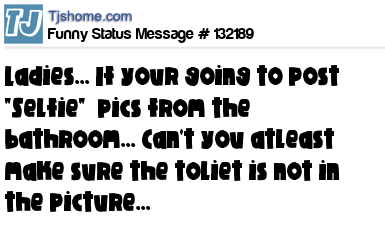 X says Ladies... If your going to post "Selfie" pics from the bathroom... Can't you atleast make sure the toliet is not in the picture...