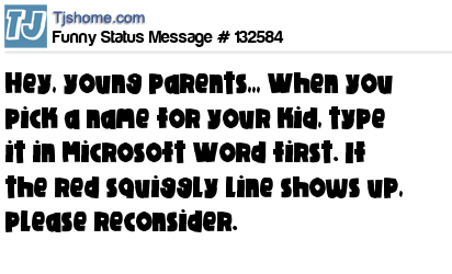 X Hey, young parents,,, When you pick a name for your kid, type it in Microsoft Word first. If the red squiggly line shows up, please reconsider.