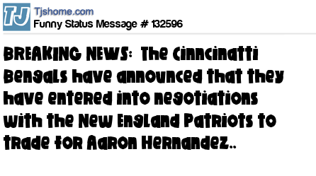X says BREAKING NEWS: The Cinncinatti Bengals have announced that they have entered into negotiations with the New England Patriots to trade for Aaron Hernandez..