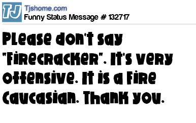 X says Please don't say "Firecracker". It's very offensive. It is a Fire Caucasian. Thank you.