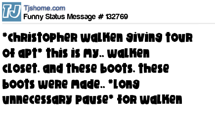 X *christopher walken giving tour of apt* this is my.. walken closet. and these boots. these boots were made.. *long unnecessary pause* for walken