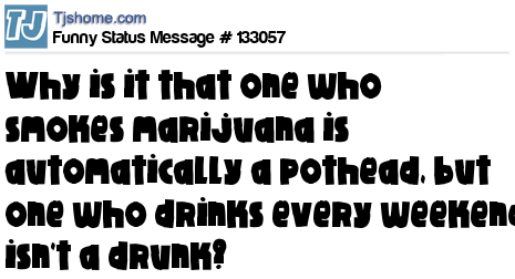 X says Why is it that one who smokes marijuana is automatically a pothead, but one who drinks every weekend isn't a drunk?