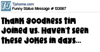 X says thank goodness tim joined us. Haven't seen these jokes in days...