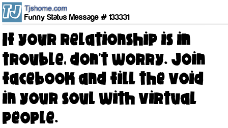X says If your relationship is in trouble, don't worry. Join facebook and fill the void in your soul with virtual people.