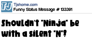 - # 133395 I think Ninja is actually spelled Kninja but the "K" is not only silent, but you can't even see it because it's F'ing NINJA!