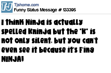 X says I think Ninja is actually spelled Kninja but the "K" is not only silent, but you can't even see it because it's F'ing NINJA!