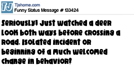 X Seriously! Just watched a deer look both ways before crossing a road. Isolated incident or beginning of a much welcomed change in behavior?