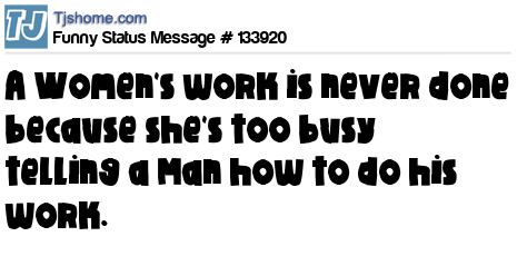 X says A Women's work is never done because she's too busy telling a Man how to do his work.