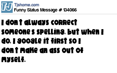- # 96870 I don't always correct someone's spelling but when I do, I google it first so I don't make an ass of myself.