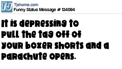 X  It is depressing to pull the tag off of your boxer shorts and a parachute opens.