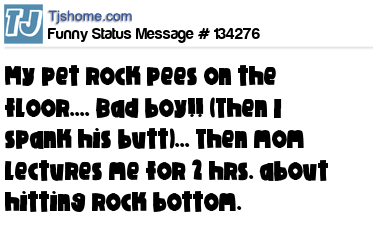 X My pet rock pees on the floor.... Bad boy!! (Then I spank his butt)... Then mom lectures me for 2 hrs. about hitting rock bottom.