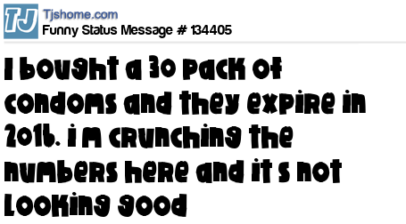 X i bought a 30 pack of condoms and they expire in 2016. i’m crunching the numbers here and it’s not looking good