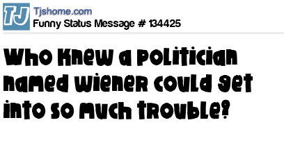 - # 172175 Bill Clinton is the only Democrat who is happy right now because it wasn't his Wiener that got Hillary in trouble