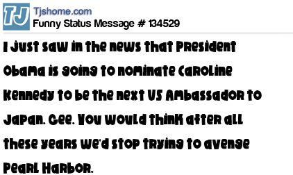 X says I just saw in the news that President Obama is going to nominate Caroline Kennedy to be the next US Ambassador to Japan. Gee. You would think after all these years we'd stop trying to avenge Pearl Harbor.