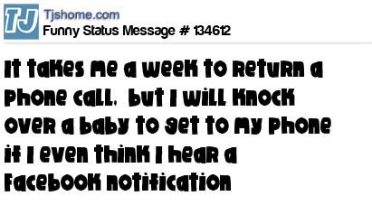 X says It takes me a week to return a phone call, but I will knock over a baby to get to my phone if I even think I hear a Facebook notification
