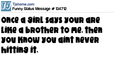 - # 152475 Nothing says "friend zone" quite like a girl saying "you're like a brother to me." (Disregard this message if you're from Alabama)