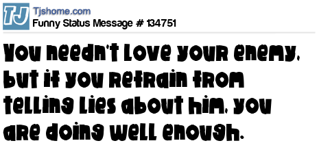 X You needn't love your enemy, but if you refrain from telling lies about him, you are doing well enough.