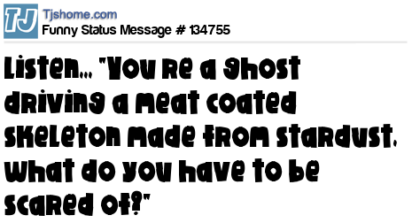 X Listen,,, "You’re a ghost driving a meat coated skeleton made from stardust, what do you have to be scared of?"