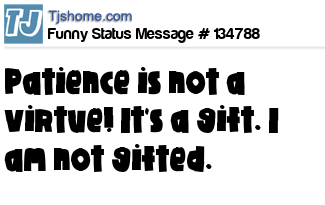- # 88727 Patience is not a virtue! Its a gift. I'm not gifted!