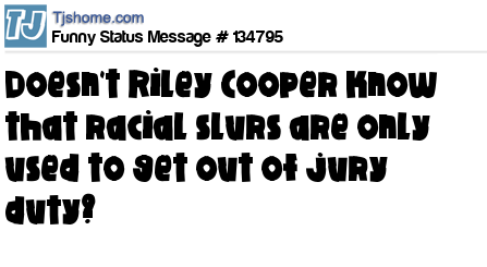 X Doesn't Riley Cooper know that racial slurs are only used to get out of jury duty?