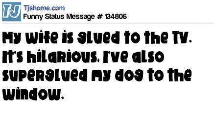X says My wife is glued to the TV. It's hilarious, I've also superglued my dog to the window.