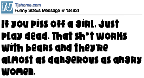 X says If you piss off a girl, just play dead. That sh*t works with bears and they're almost as dangerous as angry women.