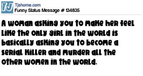 X says A woman asking you to make her feel like the only girl in the world is basically asking you to become a serial killer and murder all the other women in the world.