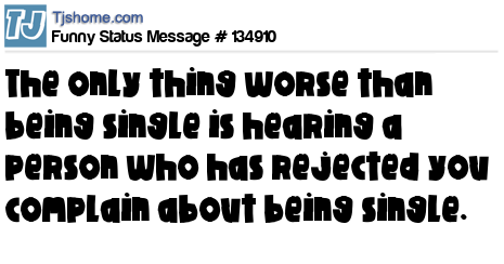 X says The only thing worse than being single is hearing a person who has rejected you complain about being single.