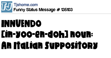 X says INNUENDO [in-yoo-en-doh] noun: An Italian Suppository