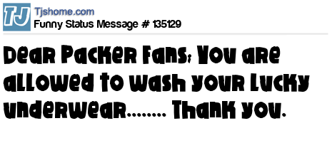 X says Dear Packer Fans; You are allowed to wash your lucky underwear........ Thank you.