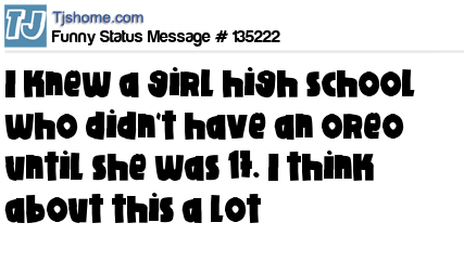 X says I knew a girl high school who didn't have an oreo until she was 17. I think about this a lot