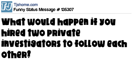 - # 67668 wonders what would happen if I hired two private investigators to follow each other?