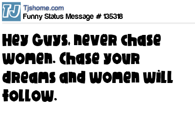 X says Hey Guys, never chase women. Chase your dreams and women will follow.