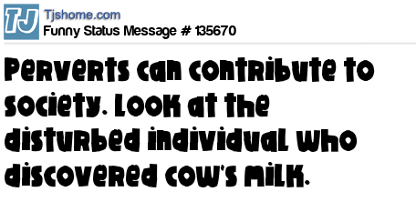 X says Perverts can contribute to society. Look at the disturbed individual who discovered cow's milk.